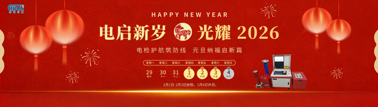 元旦鐘聲送吉祥,喜迎新年新氣象!根據國家節(jié)假日安排,結合公司實際情況,2026年元旦節(jié)放假安排如下:放假時間:2026年1月1日-1月3日放假,共3天。1月4日(星期日)正常上班。如有業(yè)務事宜請與相關業(yè)務人員聯(lián)系,相關聯(lián)系方式如下:1、產品和服務咨詢熱線:400-0828-027 / 132941535862、電氣試驗技術咨詢熱線:186071457333、售后服務專線:027-65526006萬象更新迎元旦,愿您新年新起點,事業(yè)順遂,諸事皆圓!——【武漢國電中星...